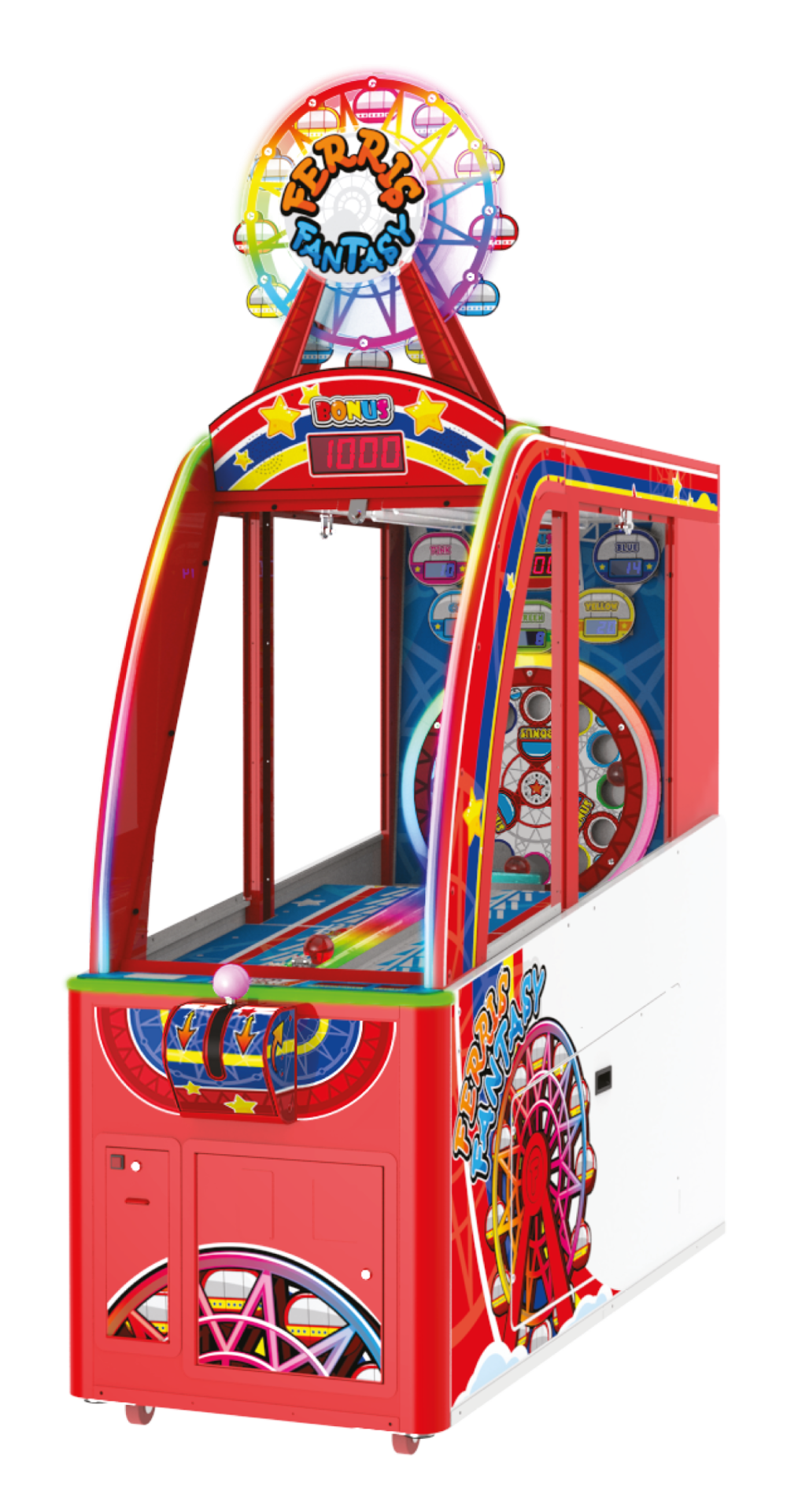 Ferris Fantasy es un juego de redención espectacular que lleva el encanto clásico de las ferias a tu sala de juegos. Su vibrante noria giratoria atrae todas las miradas, mientras que su sencillo sistema de juego de lanzar y ganar lo hace divertido y accesible para todas las edades. Los jugadores apuntan y lanzan la bola para que caiga en los hoyos de bonificación de la noria. Si aciertan, ganarán a lo grande, pero sin importar dónde caiga la bola, se llevarán entradas, lo que garantiza una experiencia siempre gratificante. Diseñado pensando en los operadores, Ferris Wheel Fantasy ofrece una mecánica fiable, un juego intuitivo y un atractivo visual. Su tamaño compacto y su temática universal lo convierten en la opción ideal para salas de juegos, centros de entretenimiento familiar y boleras. Con una alta rejugabilidad, gráficos atractivos y una jugabilidad emocionante, ¡Ferris Fantasy sin duda te ofrecerá grandes ganancias!