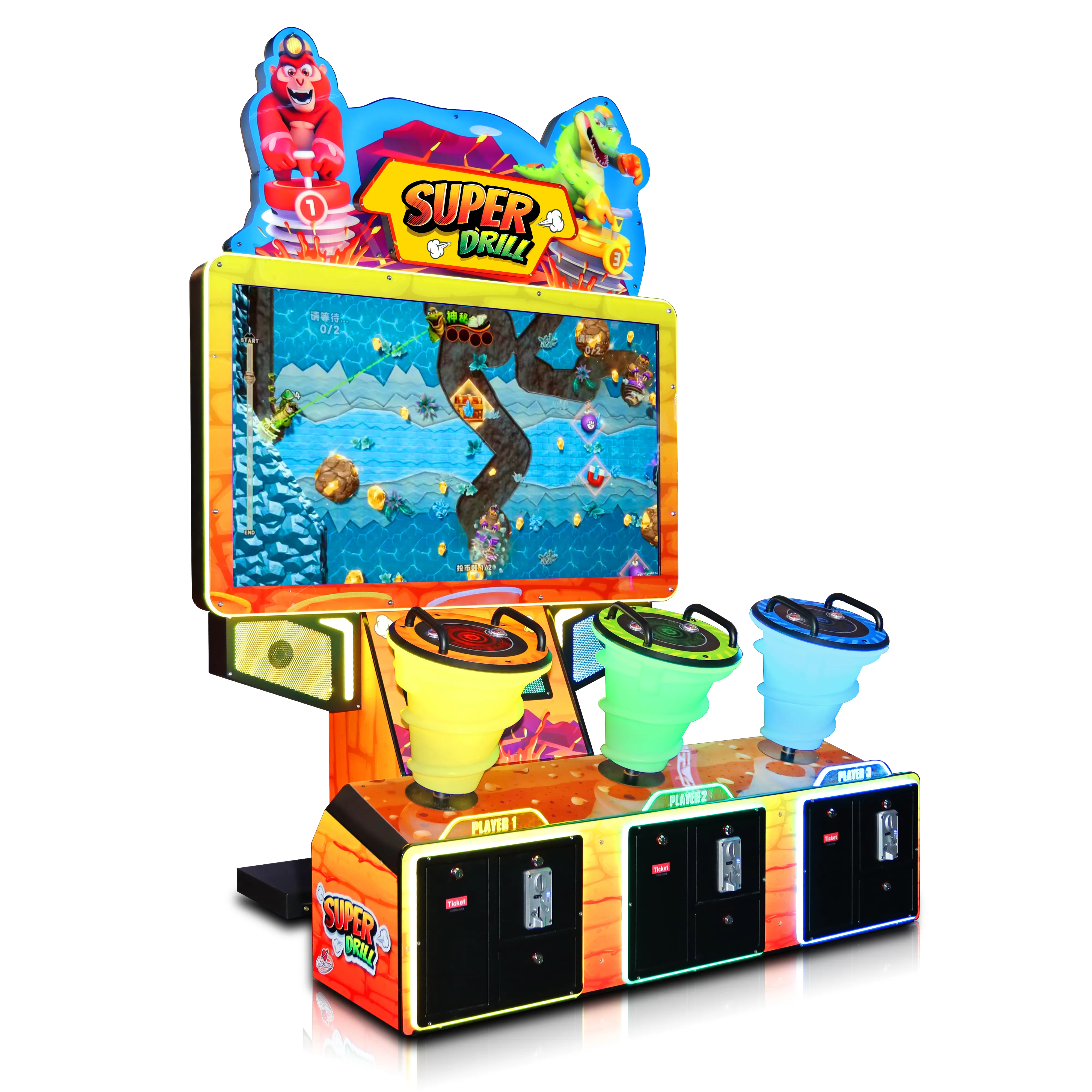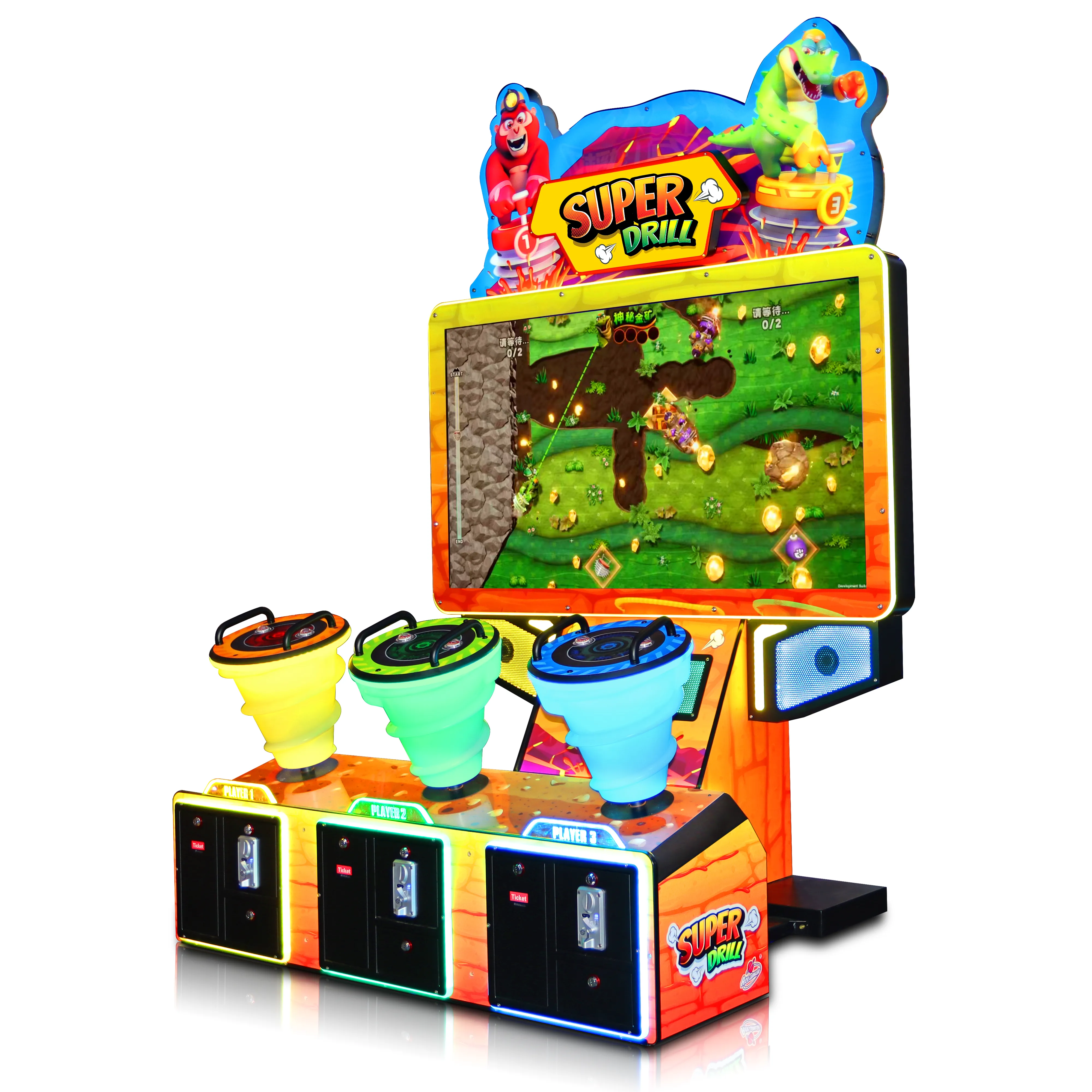 Divertidísima máquina de Redemption. Eres un minero y tienes que conseguir el mayor número de gemas para cambiar por tickets: "adelante". "Super Drill" es una nueva máquina de entretenimiento de simulación de disparos acuáticos para interiores, de gama media a alta, desarrollada por nuestra compañía. Presenta una temática única de pozo minero que reúne misteriosos accesorios de minería de oro y una apariencia elegante. Su diseño ergonómico permite a los jugadores integrarse mejor en el juego y experimentar una diversión inmersiva. Además, es un producto de entretenimiento de alto rendimiento en el centro de entretenimiento.
