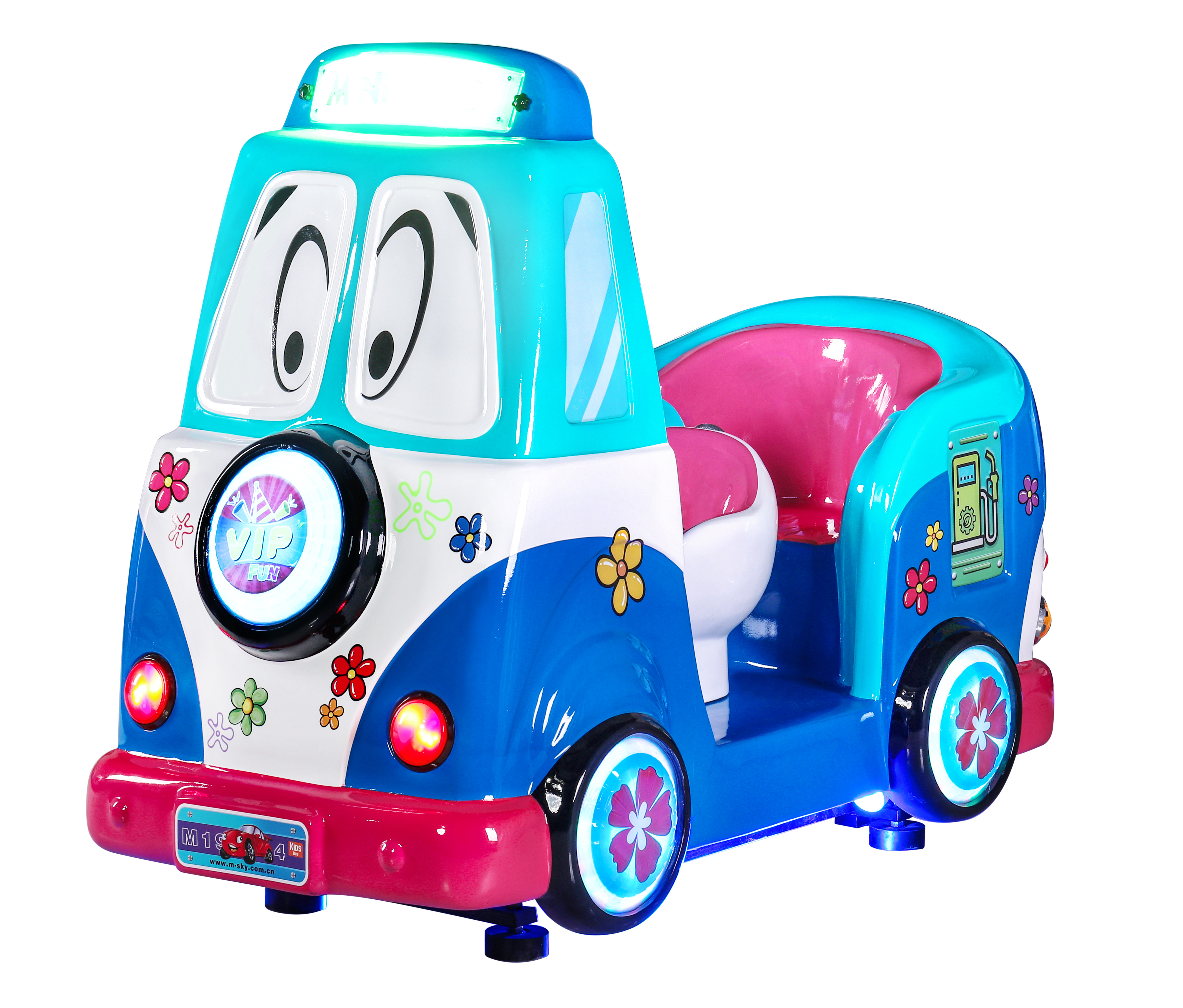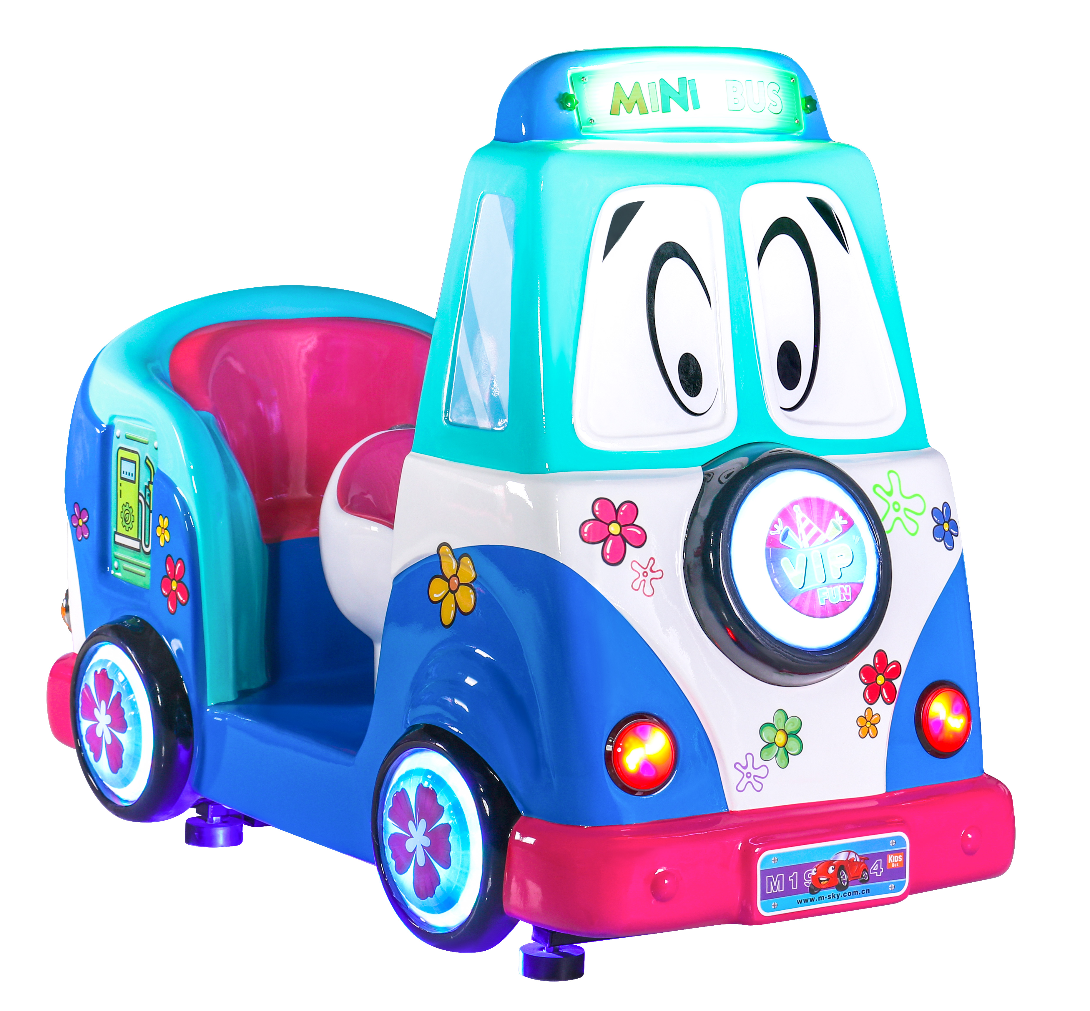 Clásico y único diseño de minibús. Interactivo con doble asiento, doble diversión. Pantalla de 17" con un juego interactivo de 3D.